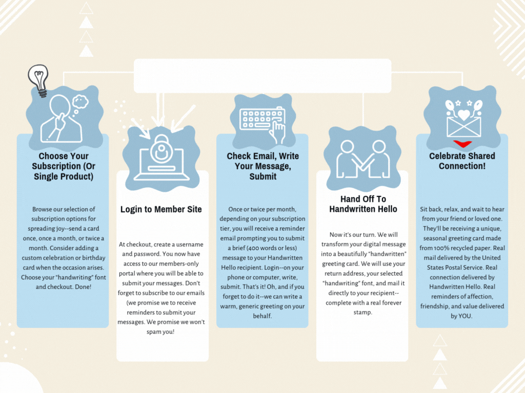 We invite you to email us at connect@handwrittenhello.com with any and all questions.